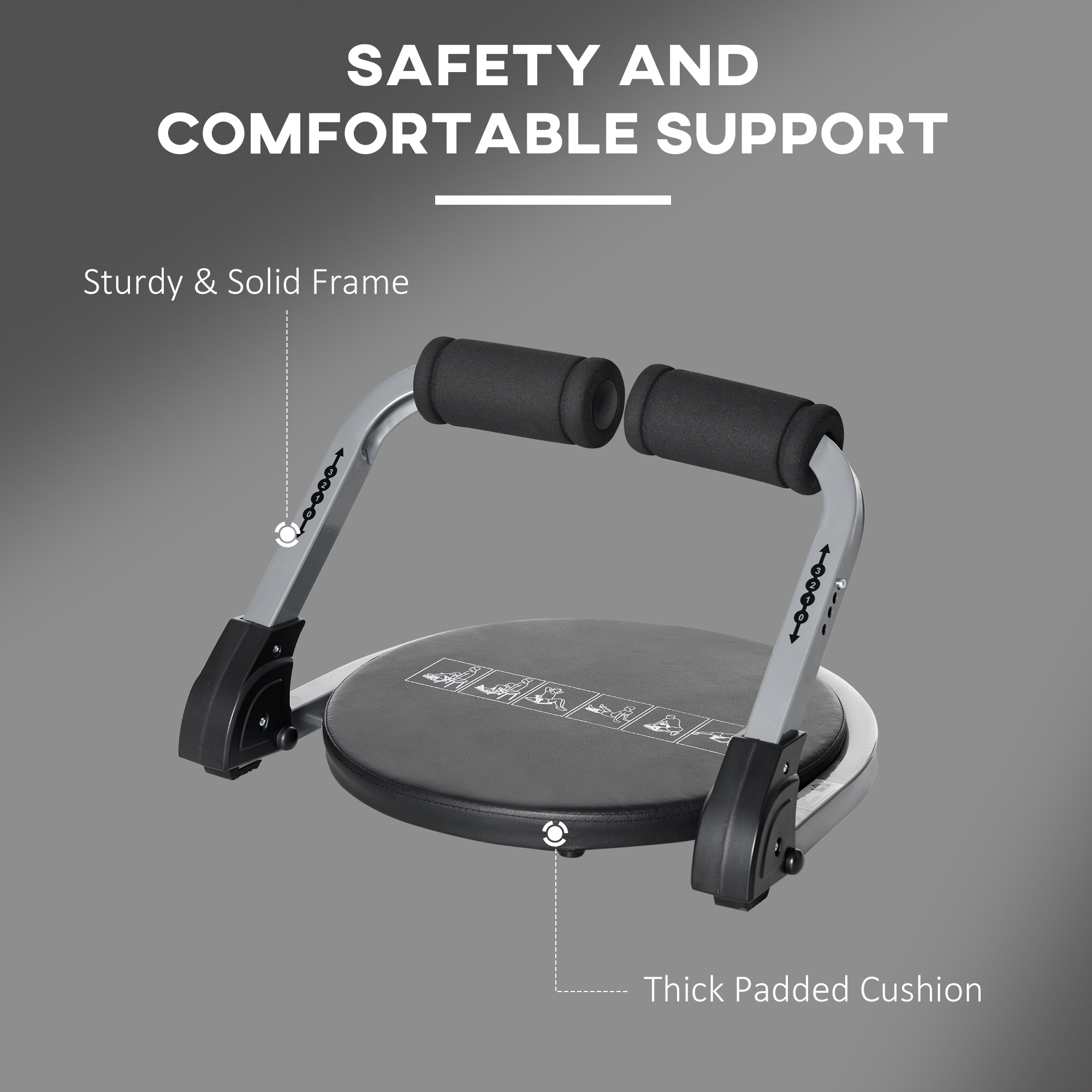 Are you tired of struggling in the crowded gym centre? This portable sit up machine is designed for you. Just put it flat on your floor, then you can have good training in your own house. Built by solid steel and PU material, it can stand weight up to 120kg. In addition, the thick padded cushion provides much more comfort when you are doing some workout on this abdominal exercise equipment.