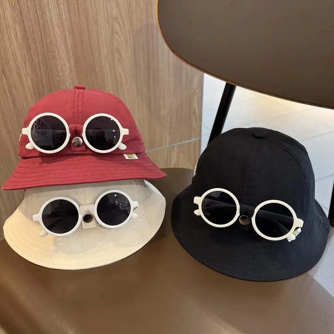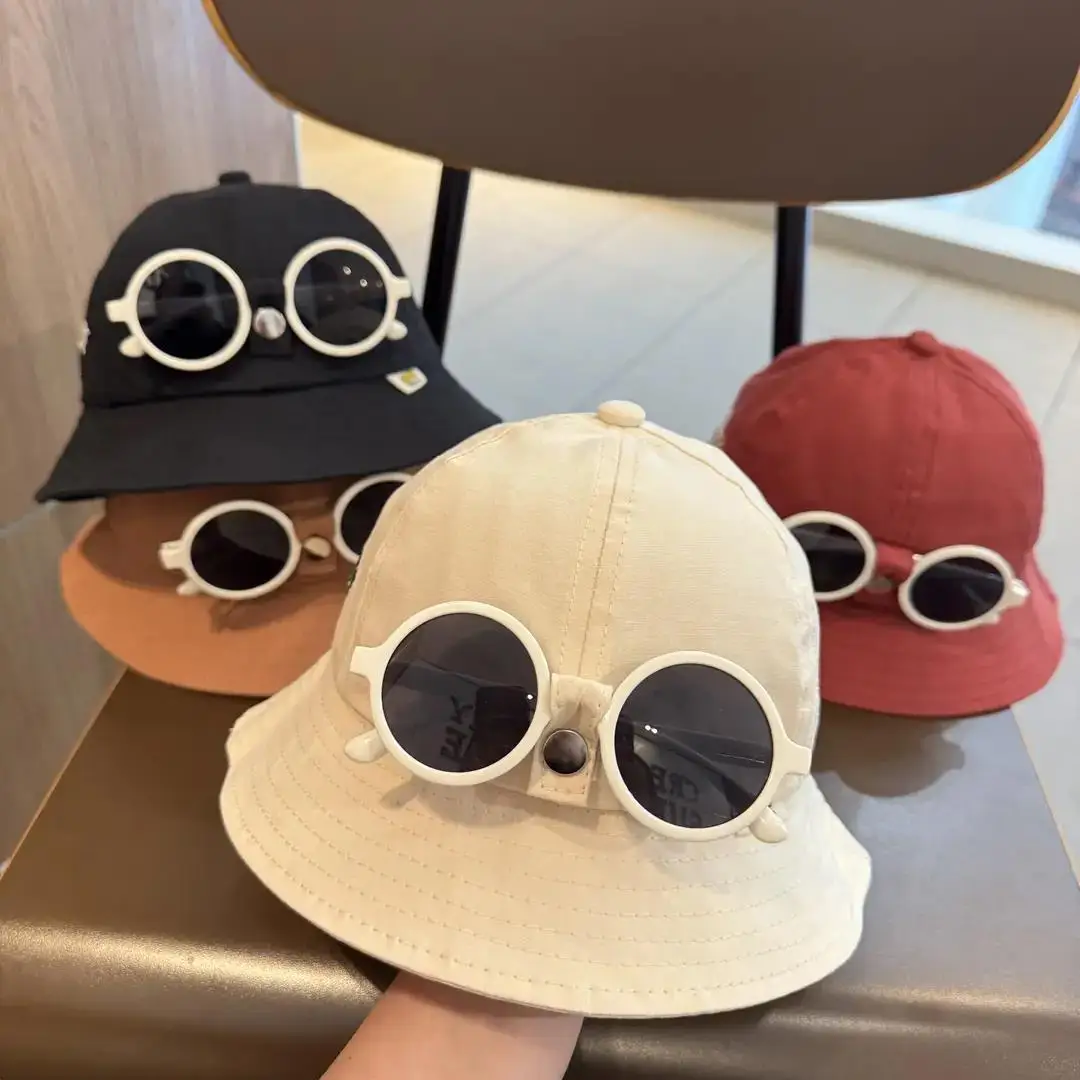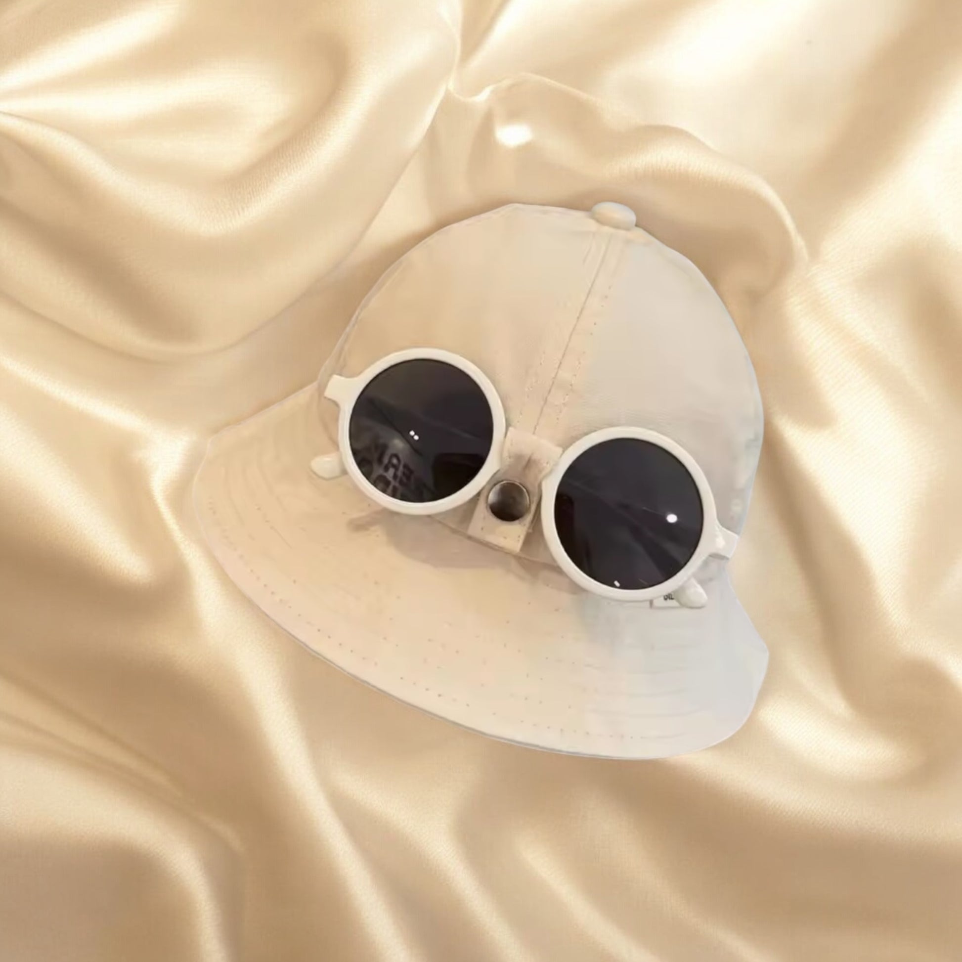 Summer Baby and Toddler Bucket Hat With Sunglasses Fits Ages 1- 4 Boys Sun Hat Large Brim Sunscreen Kids Hat
